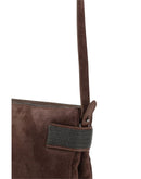 Brunello Cucinelli’s Suede Shoulder Bag is a stylish and practical accessory with a double compartment separated by zippered closures for added organization. The detail of iconic shiny jewelry adds a touch of brightness and sophistication to the design. The adjustable and removable shoulder strap offers versatility, allowing you to adapt it to your style and needs. A chic and functional item, perfect for completing any look with a touch of luxury.