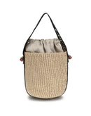 The Woody Raffia Bucket Bag by Chloé is a refined and versatile accessory. With a contrasting double flat handle and extensions on the front and back, it offers a stylish and functional design. The interior compartment, made of fabric, features an adjustable drawstring for secure closure. The brand’s iconic logo is applied to the extensions, while the removable thin leather shoulder strap adds convenience and practicality.