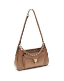 The Beat Generation Shoulder Bag by Coccinelle combines femininity and character in a compact and versatile design. It features a practical open front pocket and a zip closure that guarantees safety and functionality. The removable chain handle with shiny gold metal finish adds a sophisticated touch, while the adjustable shoulder strap allows for comfortable portability both on the shoulder and across the body. An ideal accessory to complete every look with style, from day to night.