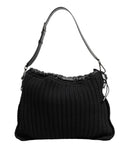 Dolce & Gabbana Black Cashmere Knitted Leather Shoulder Women Borse Bag