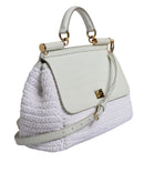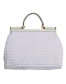 Dolce & Gabbana White Rafia Leather Top Handle Crossbody Bag
