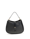 The ‘Pony’ XL Shoulder Bag by Etro is made of grained leather with suede lining, combining character and softness. It features a magnetic closure with logo-engraved metal button, enhanced by a leather strap with metal buckle. The removable handle completes its versatility, making it perfect for sophisticated daily use.