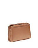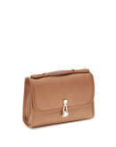 The Leonora Bag by Gabriela Hearst is a compact satchel-style flap bag featuring utilitarian leather binding, a top handle, and a removable, tuckable leather crossbody strap for versatile wear. All Leonora bags include an outside open pocket, credit card slots, an interior pocket, and a back slip pocket.