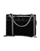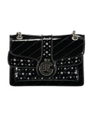 shoulder bag with chain, 2 compartments, 1 inside pocket, zip and snap closure, contrasting details, logo