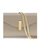 The Flutie Clutch Bag by Giuseppe Zanotti is a compact and refined accessory designed to complete any look with style. Made of smooth leather, it is distinguished by the logoed metal closure that adds an iconic and recognizable detail. The gold-tone chain shoulder strap lends a touch of luminous elegance, while the interior, equipped with a slip pocket and card slot, offers essential functionality. Ideal for evening occasions or for adding a chic accent to your everyday outfit.