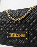 Discover the medium-sized Love Moschino QUILTED NAPPA JC4000PP handbag, an elegant and versatile accessory for any occasion. Made from 100% polyurethane, this bag features a distinctive quilted design that makes it unique and fashionable. The gold chain adds a touch of sophistication, allowing you to wear it on your shoulder or as a clutch. With enough space to hold your essentials, it’s perfect for work, a night out, or a special event. Don’t miss the chance to add an iconic piece to your wardrobe.