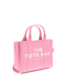 Cotton The small Tote Handbag by Marc Jacobs, two rigid tubular top handles, top zipper closure, single interior pocket, adjustable and removable flat shoulder strap, contrasting jacquard print iconic brand monogram on front, contrasting patch with iconic brand monogram applied on back.