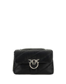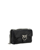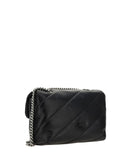 Calfskin Love Classic Shoulder Bag by Pinko, front closure with magnetic button, iconic gold-plated Love Birds logo embossed on the front, quilted and padded design, double internal compartment, sliding chain shoulder strap, iconic brand monogram embroidered tone-on-tone on the back.