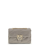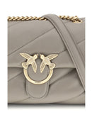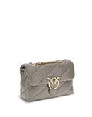 Calfskin Love Classic Shoulder Bag by Pinko, front closure with magnetic button, iconic gold-plated Love Birds logo embossed on the front, quilted and padded design, double internal compartment, sliding chain shoulder strap, iconic brand monogram embroidered tone-on-tone on the back.