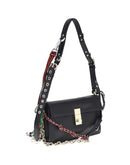 Prada’s Soft Sound Small Shoulder Bag combines soft lines and refined details in a compact and functional design. Made of lightly grained leather, it is embellished with a metallic logo detail on the front and removable accessories that enrich the shoulder strap. The adjustable and removable tonal leather shoulder strap allows for versatile portability. The interlocking closure protects a lined interior, organized with two compartments, a zippered pocket and a patch pocket. An elegant accessory, ideal to accompany everyday life in style.