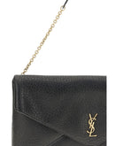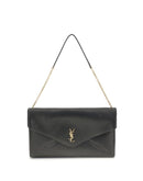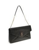The Cassandre XXL Shoulder Bag with Chain by Saint Laurent is an extra-large clutch made of soft lambskin leather, embellished with the iconic metal Cassandre logo. Equipped with a stowable cable chain strap, it can be worn on the shoulder or carried by hand, elegantly adapting to different occasions. The snap-button closure ensures practicality, while the interior is completed with a zippered pocket to keep essentials tidy at all times.