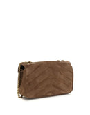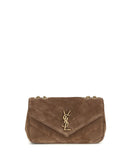 The small LouLou Shoulder Bag in matelassé suede by Saint Laurent is an iconic accessory, featuring the elegant chevron pattern that gives the design a sophisticated texture. This bag includes a removable leather clutch and mirror, adding practicality and a touch of luxury. The sliding chain strap allows it to be worn either on the shoulder or cross-body for a versatile option. The interior is cotton-lined and features a flat pocket for easy organization.
