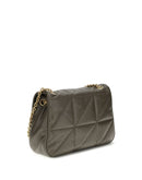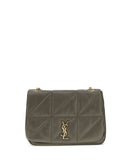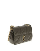 The Jamie Medium Shoulder Bag by Saint Laurent, crafted in fine lambskin leather, stands out for its all-over padded design that gives it a sleek and sophisticated look. The front flap, with snap-button closure, provides security and practicality, while the sliding chain shoulder strap, embellished with a tassel detail, allows it to be worn comfortably and stylishly. The three-dimensional, gold-plated, appliquéd YSL logo on the front adds a distinctive touch of luxury. Tone-on-tone topstitching completes the refined design, while the single-compartment interior offers simple, functional organization.