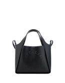 The Shoulder Bag by Stella McCartney combines contemporary style and sustainable materials with a grained faux leather design. It features two flat top handles for convenient carrying and an adjustable shoulder strap that allows it to be worn as a crossbody. On the front stands out the iconic perforated monogram, a distinctive detail of the maison. The top magnetic button closure ensures ease of use, while inside is a removable flap-and-button pouch, perfect for organizing personal items with order and versatility.