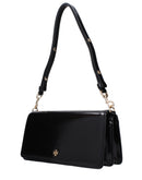 The product with MPN 157620001 and code F83374 patent leather in black is a shoulder bags designed by Tory Burch. It has features like front logo, adjustable handle, removable handle, divider inner pocket.