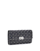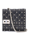The Rockstud Spike Shoulder Bag by Valentino Garavani is an accessory with a strong and sophisticated character. Made with refined quilted workmanship and embellished with small studs, it combines elegance and rock attitude. Versatile in design, it can be worn on the shoulder, cross-body or hand-held thanks to the removable chain. The front flap and swivel closure completes the look with a distinctive and secure touch.