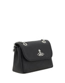 The Vivienne Westwood Shoulder Bag features a front flap closure with magnetic button, providing secure and convenient access. The chain shoulder strap adds an elegant and contemporary touch, while the contrasting three-dimensional plaque with the iconic Orb logo applied to the front enhances the distinctive design. Inside, the bag features a single compartment, combining style and functionality in a sophisticated accessory.