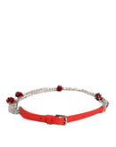 Dolce & Gabbana Red Leather Silver Chain Floral Cintura Belt