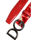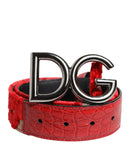 Dolce & Gabbana Red Viscose Silver DG Logo Metal Buckle Belt