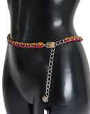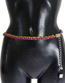 Dolce & Gabbana Red Yellow Leather Crystal Belt
