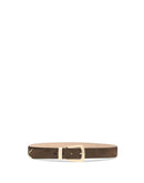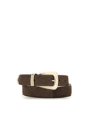 Velvety suede Benny Belt by Khaite is an accessory as versatile as it is refined. Featuring thoughtful detailing, it features a boldly shaped buckle, loop and curved toe, all made of polished gold-plated brass for a touch of bold elegance.