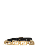 The product with MPN 1007417DV3T1B00V and code F75687 leather in black is a belts designed by Versace. It has features like front detail, front logo.