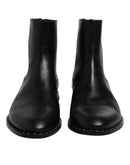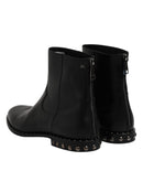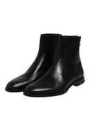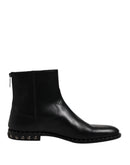 Dolce & Gabbana Black Leather Logo Ankle Boots Studded Shoes
