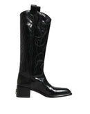 Dolce & Gabbana Black Leather Over The Calf Biker Boots Shoes