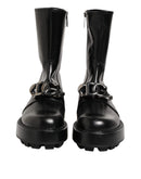 Dolce & Gabbana Black Logo Plaque Mid Calf Biker Boots Shoes