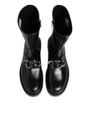 mid-calf biker boots, crafted from premium black leather for durability and style. Featuring a structured silhouette, sturdy sole, and classic biker-inspired details, they deliver both comfort and attitude. Perfect for pairing with jeans, skirts, or dresses for an effortlessly cool, urban look.