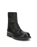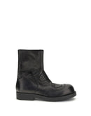 The Leather Ankle Boots by MM6 stand out for their bold and contemporary design, enriched with embroidered stitching details inspired by biker style. A perfect blend of craftsmanship and character.
