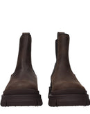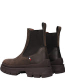 The product with MPN 4F00090M4516257 and code F85397 suede in brown is a ankle boots designed by Moncler. It has features like back logo, intentionally distressed areas may vary, intentionally spotted areas may vary, vintage effect, aged effect.
