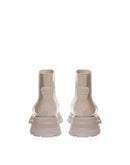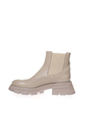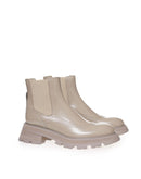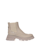 Alexander McQueen brushed leather Chelsea boots, taupe, tone on tone stitching, oversized flared notched sole, layered heel. Printed logo on back tongue, elasticated bands at sides. Composition: 100% Leather-Sku inside:23AP66-75