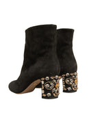 Gorgeous brand new, 100% Authentic Dolce & Gabbana black embellished heel ankle boots are crafted from leather and suede and feature an almond toe, an ankle length, a side zip fastening, a mid high block heel and crystal embellishments.