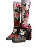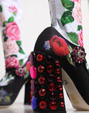 Dolce & Gabbana Black Floral Socks Crystal Boots Jersey Shoes