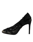 Dolce & Gabbana Black Lace Stretch Heels Mid Calf Boots Shoes
