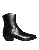 Dolce & Gabbana Black Leather Ankle Boots Booties Shoes