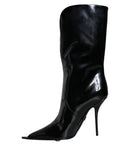 Dolce & Gabbana Black Patent Leather Mid Calf Boots Shoes