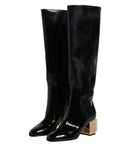 Dolce & Gabbana Black Patent Leather Vally High Boots Shoes