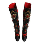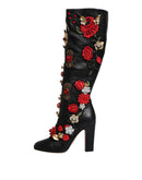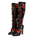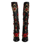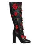 Dolce & Gabbana Black Roses Embellished Leather Heel Boots Shoes