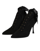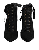 Dolce & Gabbana Black Stiletto Heels Lace Up Boots Shoes