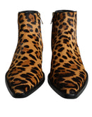 Dolce & Gabbana Brown Leopard Calf Fur Ankle Boots Shoes