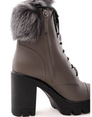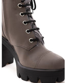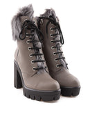 Giuseppe Zanotti Combat Boot with Inner Fur. Made of taupe-colored faux leather, maxi notched outer sole in black, front lace-up with contrasting laces and covered zipper on the side, Inner faux fur applied partially on the tongue and back. Composition:Eco Leather-Sku inner:24MG149