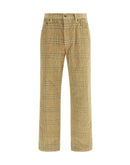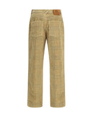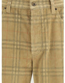 Burberry cotton Pants with a velvet ribbed design, embellished with the iconic Archivio Check motif. Five-pocket model, front button fastening and belt loops at the waist. The garment is completed by a logo leather patch applied on the back, a distinctive detail of the brand.