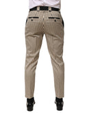 Dolce & Gabbana Beige Black Striped Cotton Slim Fit Trousers Pants