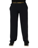 Dolce & Gabbana Black Modal Spandex Straight Logo Trouser Pants