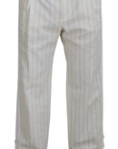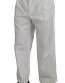 Dolce & Gabbana White Cotton Striped Formal Pants