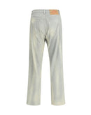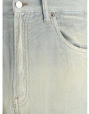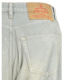 Five-pocket Pants in cotton with a corduroy effect by Prada. The model features a front button fastening, belt loops at the waist and a logo patch applied on the back. The faded finish design gives the garment a lived-in and contemporary character, perfect for casual looks with a sophisticated touch.
