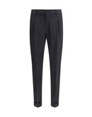 The Rebel Virgin Wool Trousers by PT Torino combine comfort with sartorial refinement. Featuring an elasticated waistband with belt loops, zip and hook closure, they are defined by front pleats that add volume and an elegant line. Side welt pockets and back flap pockets with button enhance practicality, while the cuffed hem completes the design.