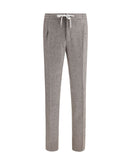The Soft Virgin Wool and Cashmere Trousers by PT Torino combine comfort and refinement in a clean, contemporary design. The relaxed silhouette, enhanced by an elasticated waistband with drawstring and concealed zip fastening, ensures ease of movement with an elegant touch. The herringbone fabric, soft and refined, adds texture and visual depth. A versatile piece that embodies effortless sophistication for everyday wear.